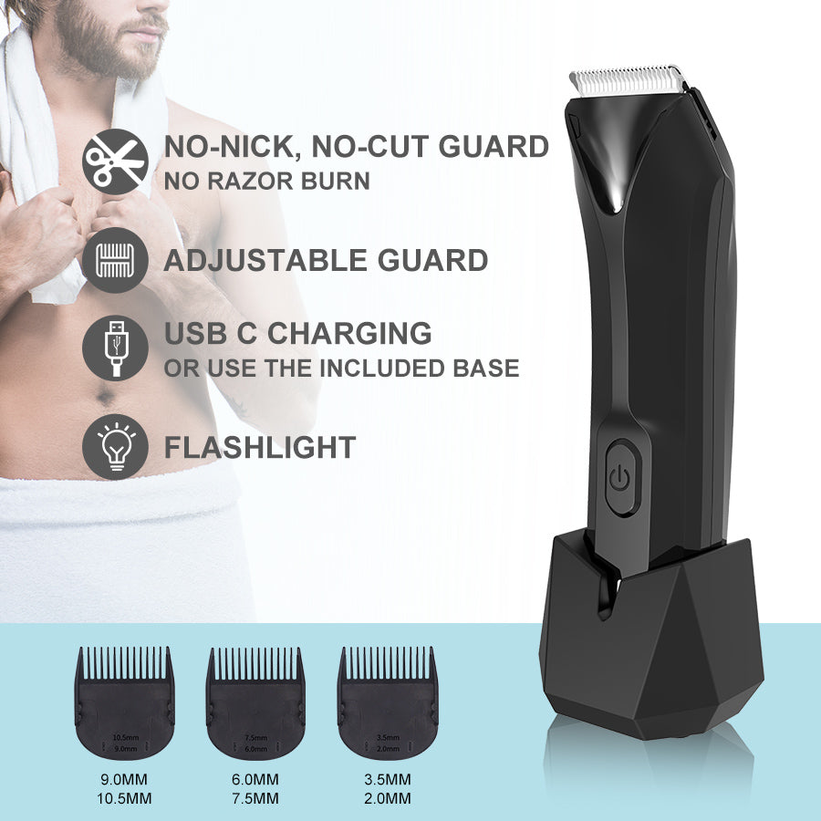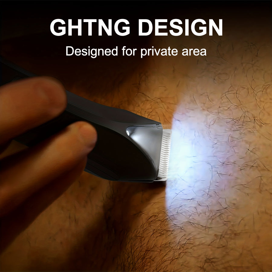 Precision and Comfort: The R-type hanging small knife head design prevents skin irritation and ensures a smooth, close trim. The bright LED spotlight helps illuminate hard-to-see areas, especially around private regions, allowing for precise trimming.